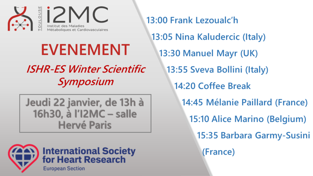 L’International Society for Heart Research (ISHR) vous donne rendez-vous pour un après-midi de présentations et d’échanges scientifiques en recherche cardiovasculaire.
